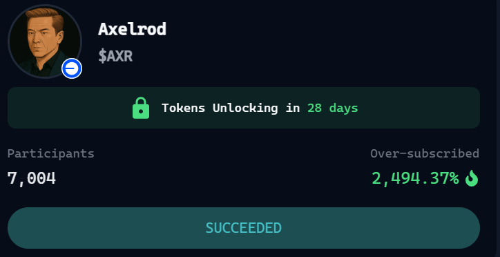 Axelrod ($AXR): Axelrod is the flagship agent of AIxVC, your AI-native hedge fund manager. He removes emotion from trading, executing strategy-based, risk-adjusted allocations across DeFi.