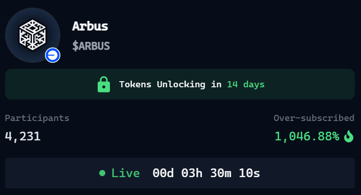 At the time of writing, $ARBUS is currently live in pre-sale, which lasts 24 hours.