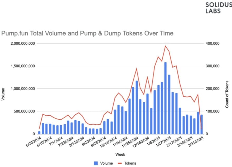 This is revealed by a new report from Solidus Labs, which shows that out of the 7 million tokens launched on Pump Fun since 2024, only about 97,000 held more than $1,000 in liquidity.